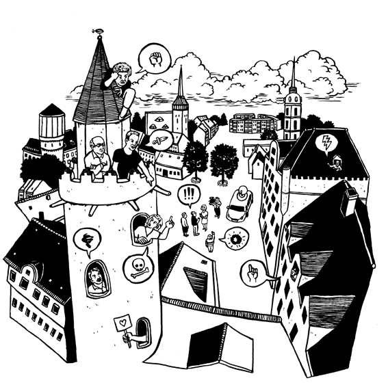 illustration for 'arte Magazin' for an article about the city of Bautzen and its reputation and conflicts.